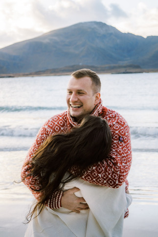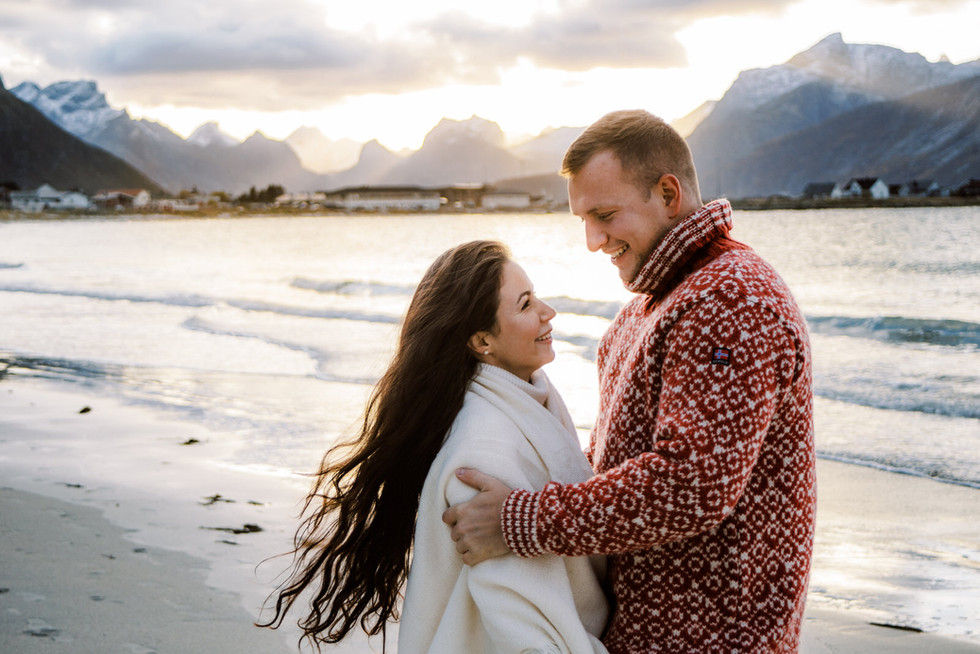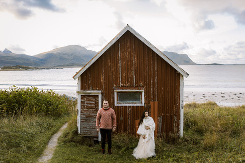 Elopement in the Lofoten Islands isn’t about a grand celebration, but about returning to simplicity and the raw beauty of nature. It’s a choice for couples who want to experience their wedding authentically, peacefully, and in deep connection with the natural world. The Lofoten Islands feel like a scene from a Nordic fairytale: dramatic mountain peaks rise straight from the sea, and the fishing villages are dotted with charming red and yellow cabins. The islands carry a unique, often rugged atmosphere.