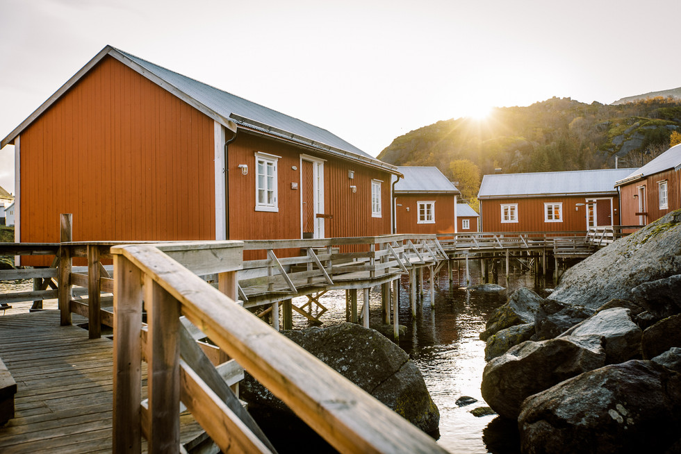 Nusfjord is a picturesque fishing village in the Lofoten Islands, nestled between towering cliffs and a quiet bay. It is one of the oldest and best-preserved fishing villages in Lofoten, offering a glimpse into the region’s centuries-old cod fishing heritage. The red wooden rorbu cabins on stilts above the water feel as if time has stood still. In the harbor, you can find small restaurants and cafés serving fresh fish and traditional Norwegian specialties. The calm atmosphere is enriched by the flavors of the sea and the essence of the North.